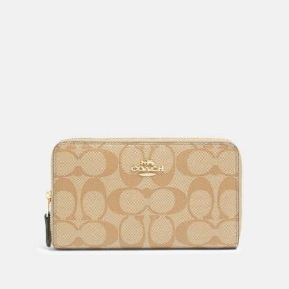 Signature coated canvas Eight credit card slots Bill compartments ID window Zip coin pocket Zip-around closure 6 1/2 (L) x 3 3/4 (H) x 3/4 (W) Style No. 88913 | Outlet Medium Id Zip Wallet In Signature Canvas - Beige