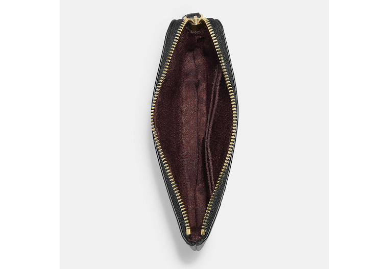 Printed coated canvas and smooth leather Two credit card slots Zip-top closure fabric lining Wrist strap attached 6 1/4 (L) x 4 (H) x 1/2 (W) Style No. CF548 | Outlet Corner Zip Wristlet With Monogram Print - Black