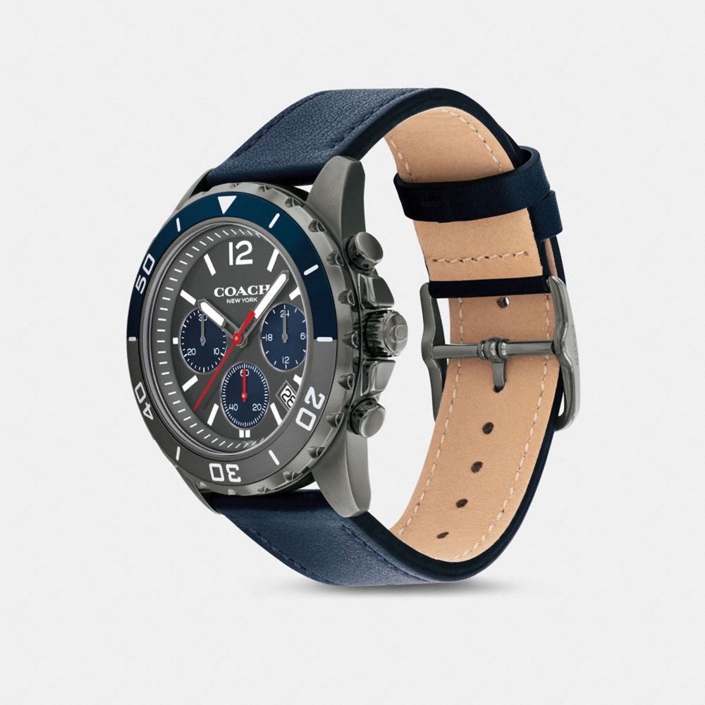 Gray ionic plated case and deep blue leather strap