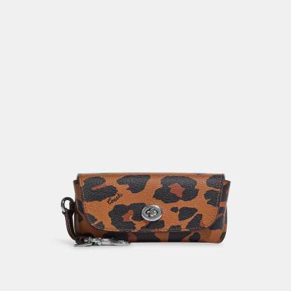 Printed coated canvas and Signature coated canvas Turnlock closure fabric lining Attached dogleash clip 6 3/4 (L) x 3 (H) x 1 1/2 (W) Style No. CC950 | Outlet Sunglass Case With Leopard Print And Signature Canvas Interior - Brown