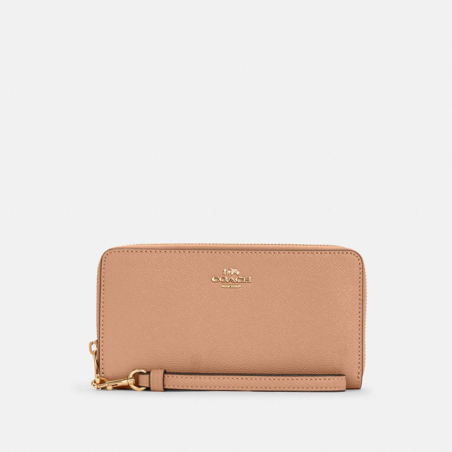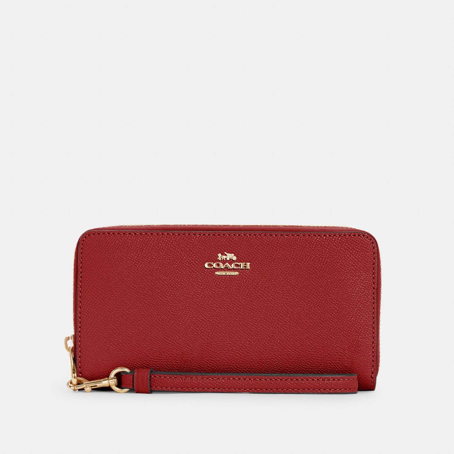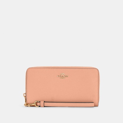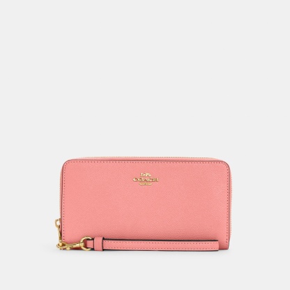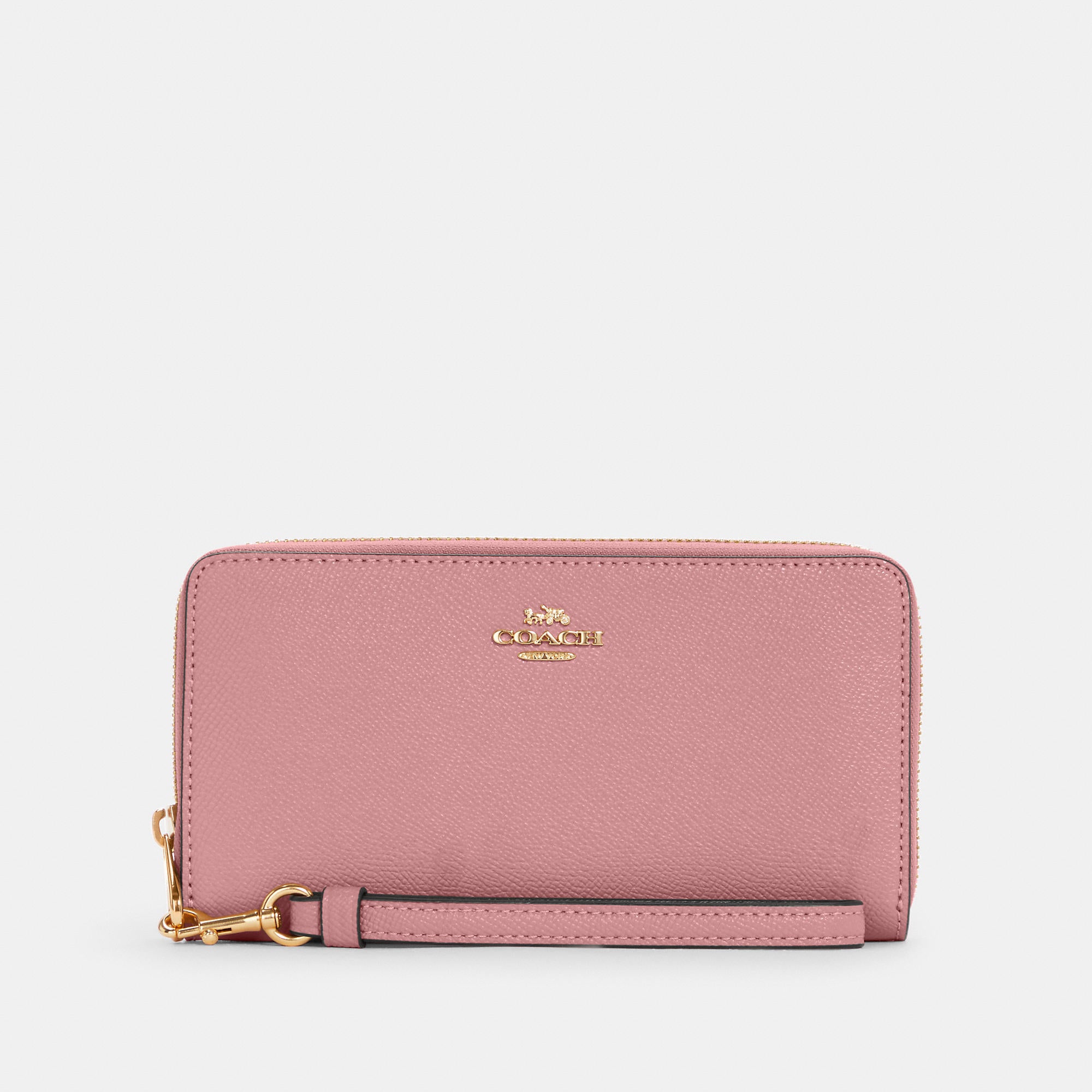 Crossgrain leather Twelve credit card slots Full-length bill compartments Inside zip coin pocket Zip-around closure Detachable wrist strap 7 1/2 (L) x 4 (H) x 1 (W) Fits all iPhone and Samsung Galaxy phones Style No. C3441 | Outlet Long Zip Around Wallet - Pink