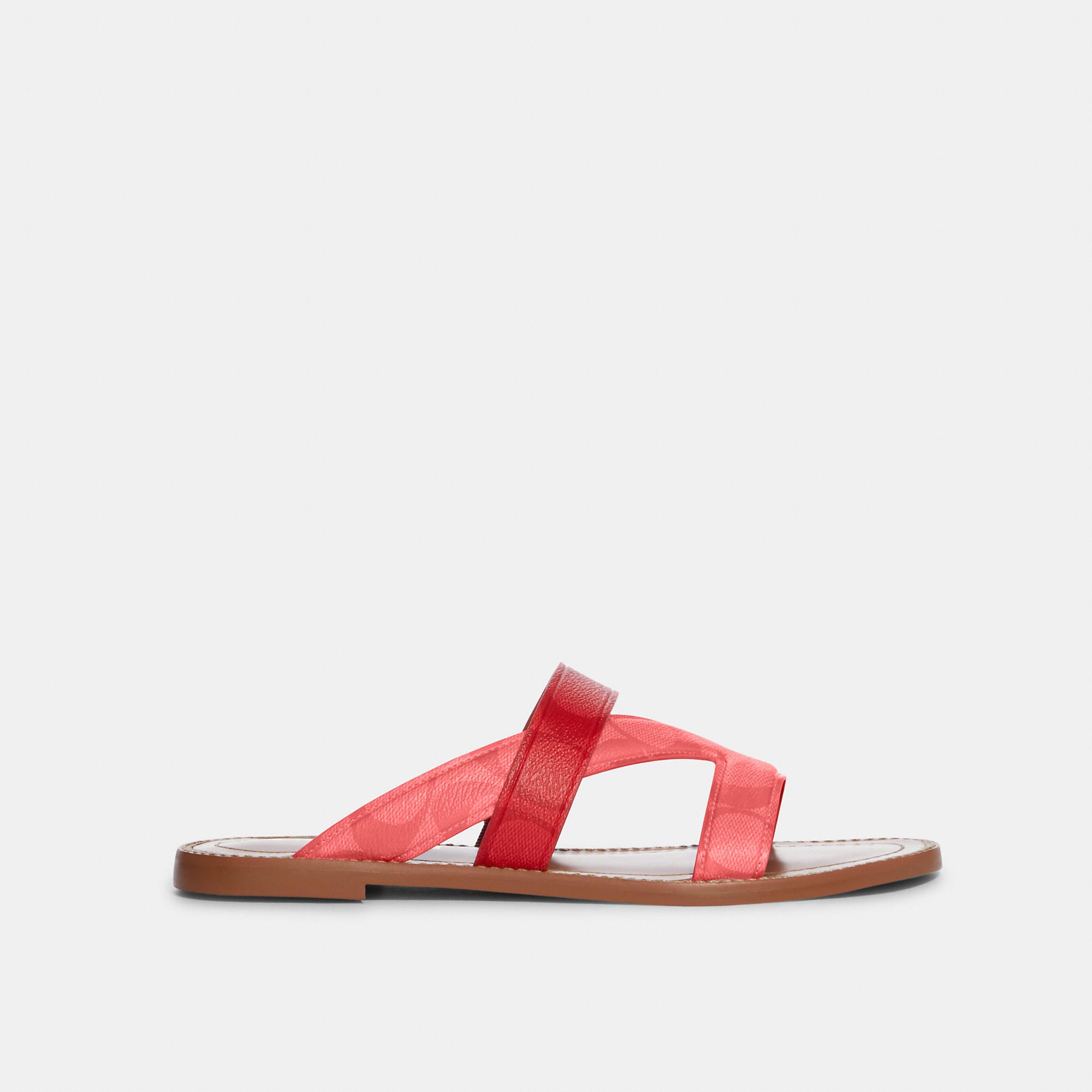 Signature coated canvas upper Man-made leather lining and footbed Rubber outsole Slip on 1/4 heel Style No. CA362 | Outlet Harlan Sandal - Pink, Size - 8