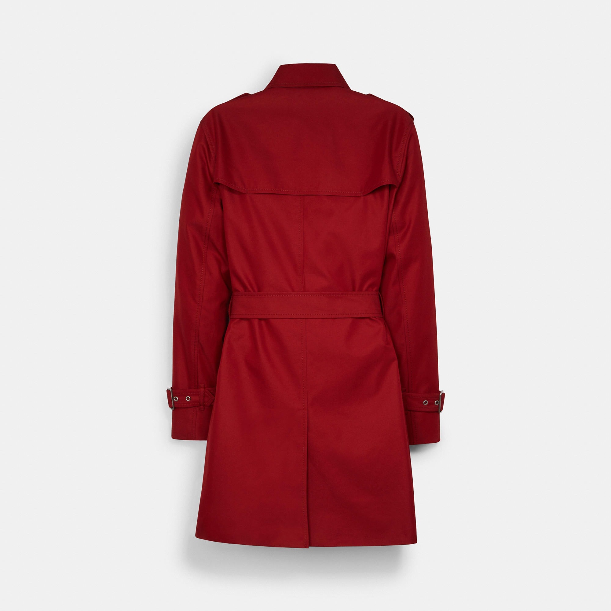 68% cotton 32% polyester Lining - 56% polyester 44% viscose Button closure Slip pockets Adjustable belt Length - 33 Style No. C8771 | Outlet Solid Mid Trench - Red, Size - X-Small