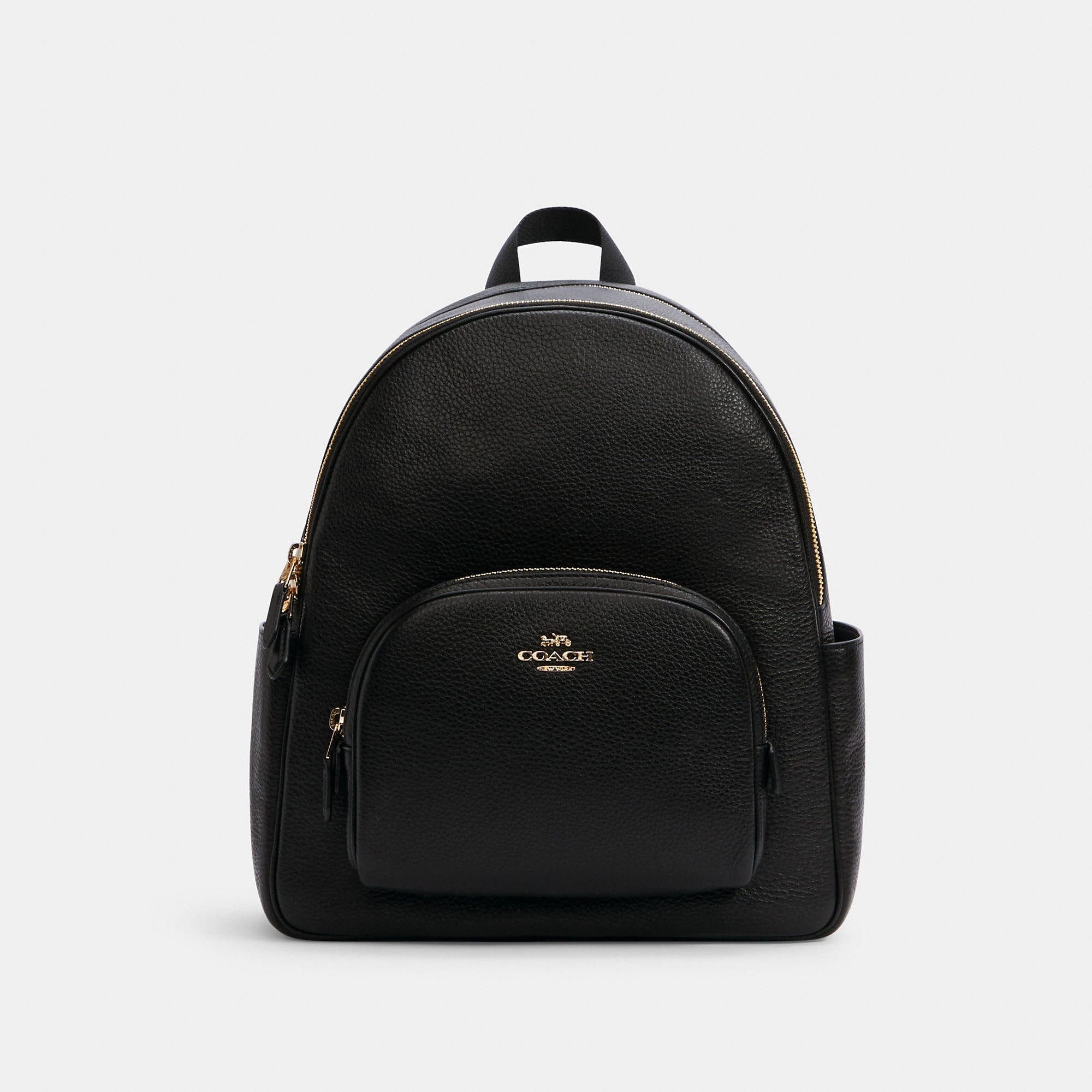 Refined pebble leather Inside zip and multifunction pockets Double zip closure fabric lining Handle with 2 1/4 drop Outside zip pocket Adjustable shoulder straps 10 3/4 (L) x 12 1/2 (H) x 4 3/4 (W) Style No. 5666